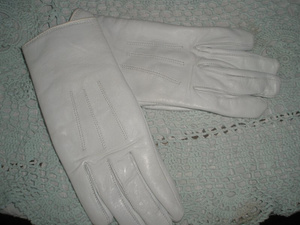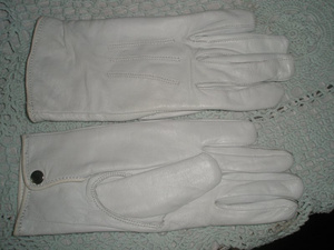 1. Перчатки белые нат. кожа, на крупную ручку, на трикотажном подкладе.