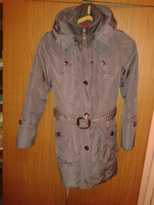 Продам пуховик, я носила как куртку. Длина 80 см. Цвет мокрый асфальт с черносливовым отливом.размер 42-44.