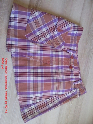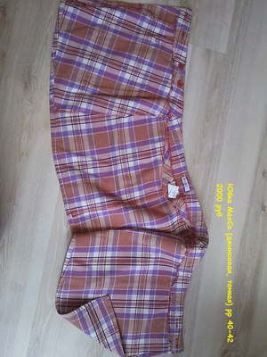 3) Юбка короткая джинсовая. Размер: 40-42. Состояние: б/у, отличное. Цена: 200 рублей