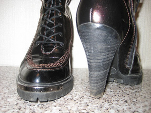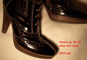 продам д/сезон ботинки 39 размер , верх шнуровки на крючках (как у фигурных коньков) лаковые, цвета горького шоколада. Состояние хорошее за 400 рублей. К ним есть подходящая сумка (размеры 21*37; вместе с ручками в подвесе -49 см). По цене рассмотрю любые Ваши варианты.