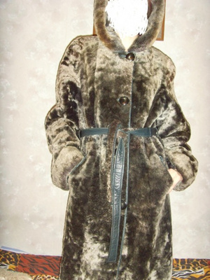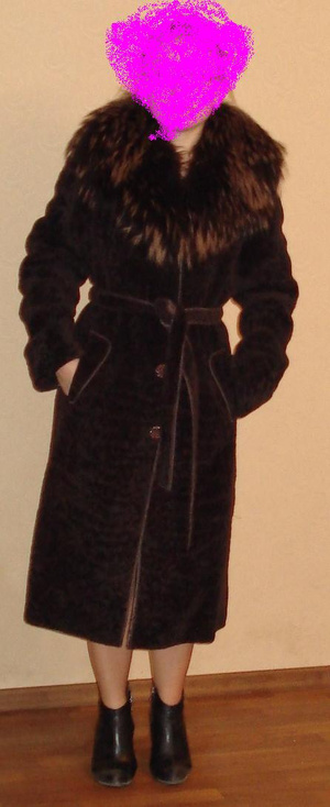 Шуба из тонкого мутона (турецкая), с воротником из енота, в хорошем состоянии. Цвет – темный шоколад, у шубы есть небольшой подклад из синтепона, что делает ее очень теплой. Расмер – S, длина – около 1 м. цена – 2500. Писать в личку.
