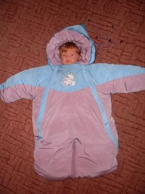 Пуховый детский комбинезон-трансформер "Исток-Сибирские пуховые товары". Наполнитель - 100% гусиный пух. Р-р 22 (от 0 до 1,5 лет). 1000 р.