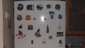 Я часть магнитиков "нетуристических", обычных, повешала на нижнюю дверцу, ими Ваня играет