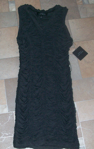 Классное дизайнерское платье Robert Rodrigues. Бренд знаменитый и дорогущий. Одежда интереснейшая. Я бы о ней сказала: архитектурная. Там не столько цвет играет, сколько форма и мелкие детали кроя. Это платье из вискозы, приятнейшее на ощупь. Выглядит очень сексапильно, особенно на фигуре с изгибами. Цвет темно-серый, масса мелкой сложной драпировки. Платье довольно плотное и тяжелое, по замыслу должно облегать фигуру, как перчатка, слегка моделируя фигуру по принципу бондажа. В пир, мир и добрые люди. Без пояса. Размер XS (40-42-44). Длина 82 см. Изначальная цена почти 400 долларов. Вещь отличная, качество отменное. Я люблю подлиннее. Пристрою за 2838.