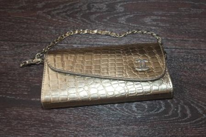 1. Клатч золотой на цепочке, р-р 25см Х 12 см Х 5 см, есть длинный ремешок, "выходил" один раз, 200 руб.