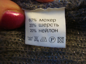 Цвет синий. Состав: 60 хлопок, 25% нейлон, 15% ангора.