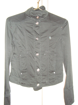 2.Типа ветровки, черная, хб, тянется, р-р 42-44, может на 46 можно попробовать, отс