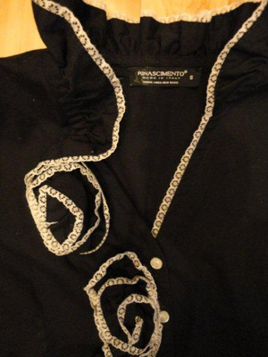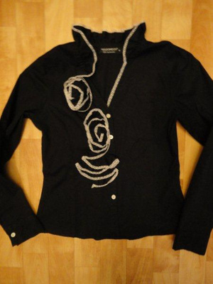 1. Черная шифоновая блузка с запахом. Рукав 3/4 клешёный, рюши, завязки. Как говорится: и в пир, и в мир.Одета один раз. Р-р. -44-46. Цена - 100 руб.