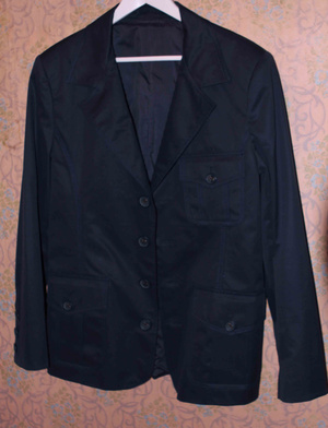 размер 50-52,новое,на каждом рукаве по 4 маленьких пуговицы,подклад темно-синий с рисунком