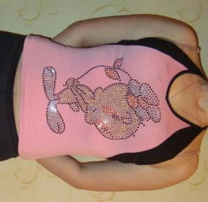 4. майка удлинённая тёмно-синяя с сердцем из страз, длина 75см, размер 42-44, 250р