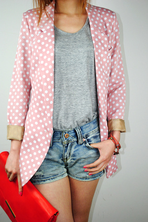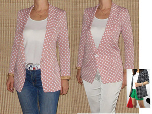 пиджак Zara, красивый оттенок розово-телесного цвета с белым горохом на р-р 44-46 и черный с белым горохом на р-р 42-44 на рост 165-175см. цена 1500р