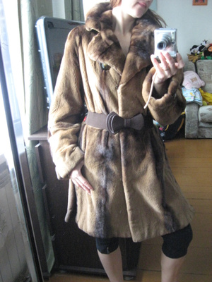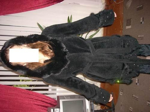 дубленка 500 р., в хорошем состоянии, 46 р-р, капюшон отстегивается, приталенная, мех не потерт нигде.