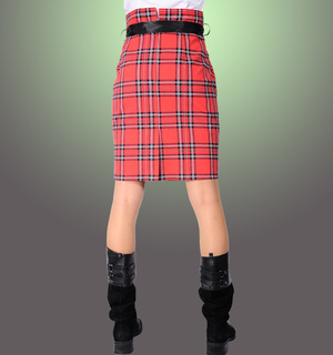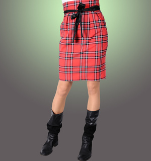 Изумительная шотландка - "тюльпан", с высокой посадкой и атласным черным поясом.