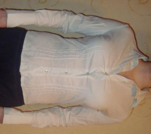 3. Бледная желто-молочная рубашка, тонкая, практически невесомая. Р-р. 40-44. Ни разу не носилась. Сшила, теперь лежит без дела - 200 руб.