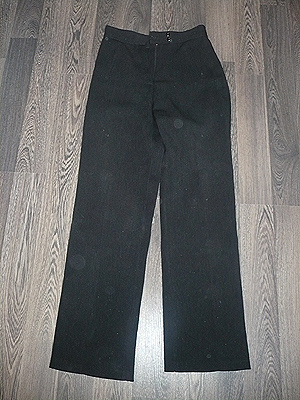 2. Черные прямые брюки на холодное время года. Ткань плотная, черная с небольшим добавлением блеска.Привезены из Германии. Размер 44-46. Цена - 200 руб.