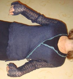 2. Кофта синяя, шерстяная, с голубой отстрочкой, PROMOD, с запАхом, длина 50см, длина рукава 63см, 450р