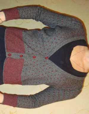 2. кофта черная, с серой отстрочкой и разными рукавами, длина 60см, длина рукава 60см, 300р
