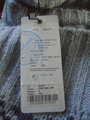 Состав: 5% шерсть, 80%хлопок, 15% эластан