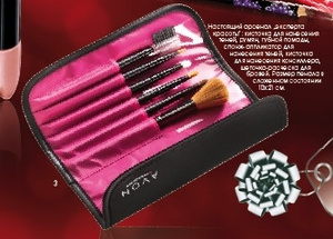В наборе кисточка для нанесения теней, румян, губной помады, спонж-аппликатор для нанесения теней, кисточка для нанесения консиллера, щеточка-расческа для бровей.