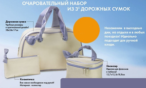 набор косметичек ив роше, тканевые, нежно-бежевые с сиреневой окантовкой, ручками и бантами, все на молнии - 200р.