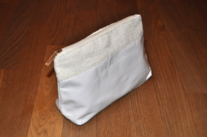 Clarins, тканевая, вместительная, белая (полиуретан) с молочным (тканевая), на молнии, вместительная - 200р.