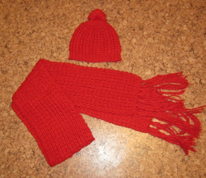 3. Вязаный наборчик Zara красного цвета (шапка и шарф). Цена 700 р.