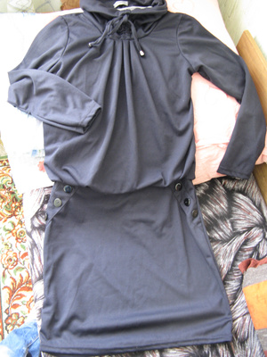 1. Платье черное теплое трикотажное Love Republic на подкладе. Рукава можно носить 2-мя способами (застегнутыми на пуговички и обычно 3\4). Кармашки внутренние по бокам, на замочках. Цена 800 руб.