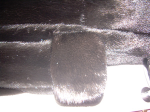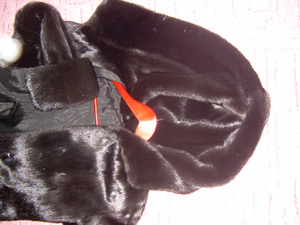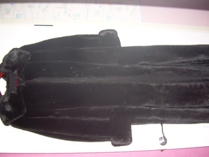 очень много меха: длина - 135 см, двойные манжеты с отворотом, двойной капюшон.