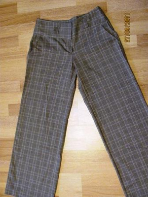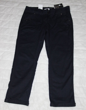 - Esprit, темно-синие в серую полоску, размер - немецкий 36, это русский 42, но мне на 44 - ый подошли. 800р.