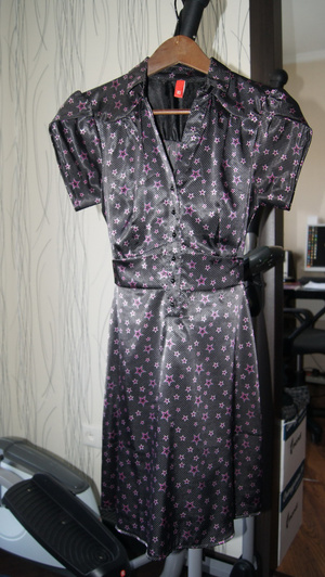 3.Платье фирмы OSTIN, абсолютно новое, размер XS, цвет темный шоколад + сиреневые звездочки, спереди мелкие пуговки, сзади завязывается пояс.