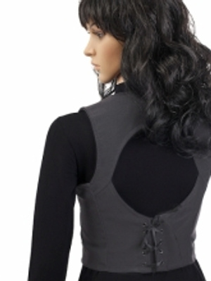 Оригинальная женская жилетка с красивым вырезом на спине и шнуровкой.