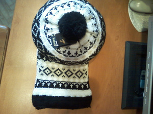 , р-р 56-58,но т.к.на резинке, то фактически универсальный + шарф, дл.144см , состав: 50% шерсть+50 акрил.