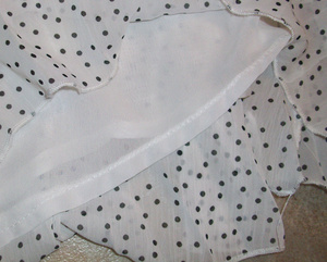 Прелестное платьице в мелкий горошек. В стиле ретро. Романтичное, нежное, воздушное. В нем сразу становишься барышней. Декорировано тканевыми цветами. Плиссеровннная юбка. С подкладом. Покрой "ампир", выгодный для обладательниц животиков. Приятная на ощупь тонкая ткань. Размер 42-44-46. Надето, кажется, один раз. Состояние нового. 1,5 тысячи.