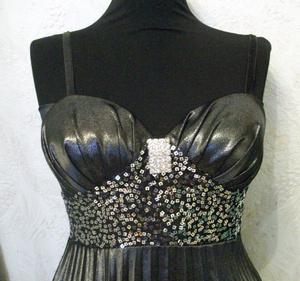 Классное нарядное платье на 42-44 размер. Можно рискнуть померить на 46. Темно-серое серебристое. Оно из тех нарядов, в которые наряжают манекены - для привлечения клиентов. Очень красивая плотная гладкая ткань с блеском. Однозначно выше колена, но от роста зависит - насколько. Покрой «ампир» - скрывает разные огрехи фигуры. Плиссерованная юбка. Под грудью - отделка пайетками в тон и брошью со стразами. Чашечки у лифа жесткие, рельефные - специально для того, чтобы носить его без бюстгалтера. Все отлично поддерживают. До 2,5 размера груди. Сбоку замок, сзади – шнуровка. Смотрится эффектно, при искусственном освещении - особенно! Образ аля гламурная ведьмочка. Покупала задорого. Продам за 2000 рублей.