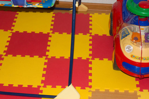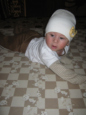 У нас вся комната светлая, и кроватка у Игорехи белая...стены белые, светильник белый, так что коврик, который нам папа купил - вырви-глаз, но Игореха когда пытается ползать и "роняет" голову ударяется об пол (коврик тонкий), а мне надо, чтобы упал головой, но ему было не больно....