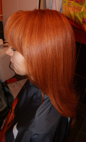 У неё свои волосы в прекрасном состоянии, не считая концов, после смывки. Делали для лечения.