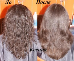 Эффект, конечно, потрясающий!!! Волосы мягкие, послушные, уложила я их всего за 10 минут, раньше на это уходил минимум час! Причем, объем и пышность прическа совсем не потеряла, зато волосы теперь не пушатся и очень сильно блестят! Вообще я очень довольна, прическа при минимуме усилий смотрится аккуратно, волосок к волоску лежит, ничего нигде не торчит, прям супер