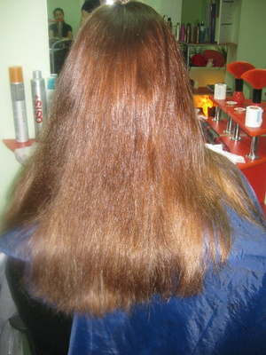 А это Юлечка с форума).А вот и я. Вчера помыла голову, естественно боялась, что весь результат "прямоты" смоется