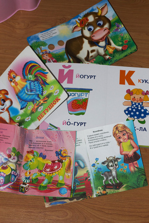Свет, вам еще рано книжки обычные, можно попробовать книжку с толстыми картонными листами (хотя у нас все равно прогрызена и такая в паре мест) или на кормление мягкие книжки-пищалки (она их рассматривает, когда кушает, потом мою их от каши) и еще есть тряпичные книжки прикольные