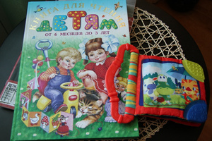 Света, у нас есть книжка для жевания и книги для чтения! Первая из текстиля и шуршит, он её обожает, я её мою каждый день и Миша со спокойной совестью жуёт её. А для чтения большие и картонные, он и их естественно пытался сожрать, но они большие, тяжёлые и твёрдые. Он быстренько оставили эти попытки и стал только смотреть и слушать, ну иногда ещё рукой постучит и всё