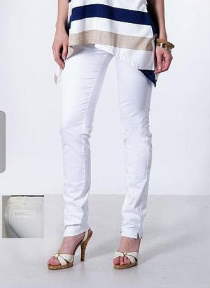 бело-бежевые новые, с этикеткой, брючки из хлопка с лайкрой, размер 42. 200 руб