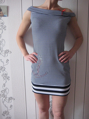Платье в морском стиле,можно носить в 2 вариантах, (см фото бретели и воротничек)
