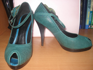 Продам немного Б/У туфельки, красивого темно-зеленого цвета. Натуральная кожа. Только набойки немного подстерты. Размер 39. Каблук - около 10 см. Цена 2500 руб. Торг