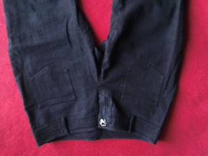 рр 42 по внешнему шву, неровно прошита строчка, вернее захвачена штанина в шов вот фото, правая штанина в чуть ниже колена, см 6-7 нужно только распороть по шву и снова прошить