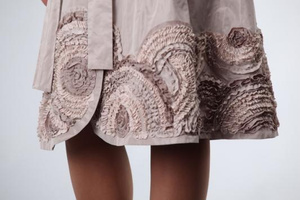 По низу платья отделка - застрочено рядами.