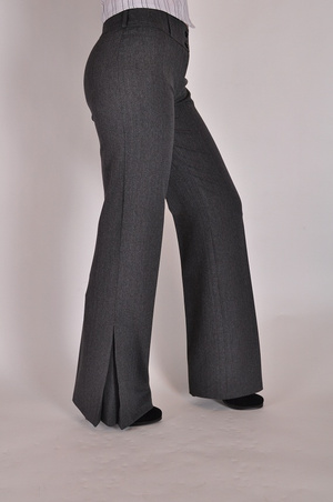 Женственность-главное достоинство этих брюк.Вы можете поэкспериментировать в выборе ремня благодаря наличию шлевок на поясе.Посадка немного занижена,брюки плотно облегают ягодицы.Достаточно широкие брючины декорированы встречной складкой.Туфли на шпильке будут весьма удачным партнером этой модели.