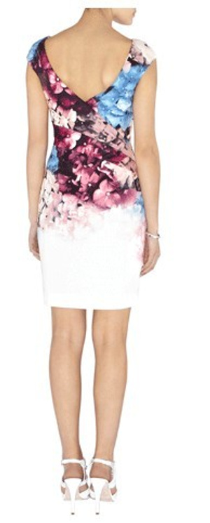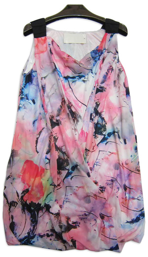 1. Платье Berschka c рисунком волка спереди. Рукава наполовину трикотажные, в пройме расклешеные, от середины трикотаж в обтяжку.