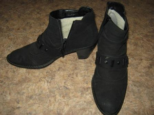 Ботильоны Рикер, размер 41. Верх что-то между замшей и нубуком (зернистая структура), внутри шерсть. На температуру до -15. Каблук 5см, антишок. Цена 1000р
