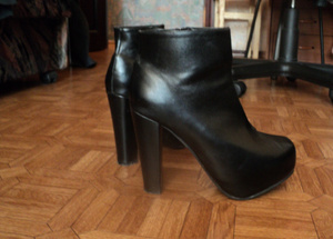 Одевались пару раз.Даже пленочка защитная еще есть.Для меня высоковат каблук и платформа...