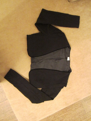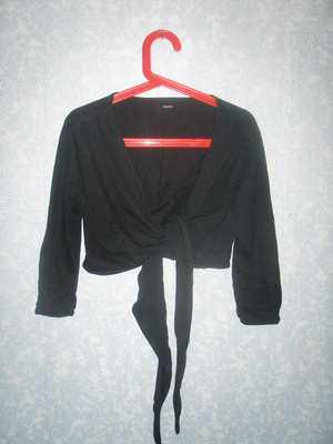 Продам черное трикотажное болеро с атласной отделкой по краю (с подкладом). Размер 42-44. Покупала в camaieu. Одето 1 раз. Цена - 600руб. Мерить на пл. Калинина.